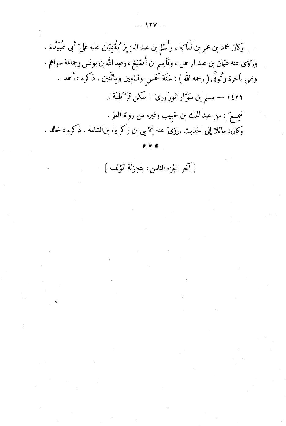 آخر الجزء الثامن: بتجزئة المؤلف