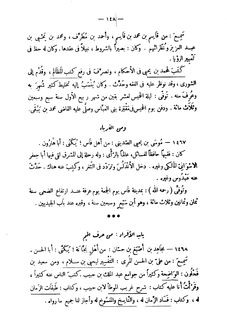 1467 - مُوسَى بن يحيى الصّديني: من أهل فَاس؛ يُكَنَّى: أبا هارون.