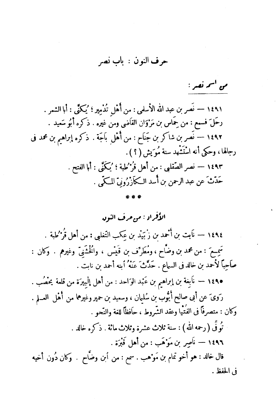 1493 - نصر الصّقلبي: من أهل قُرْطُبَة؛ يُكَنَّى: أبا الفتح.