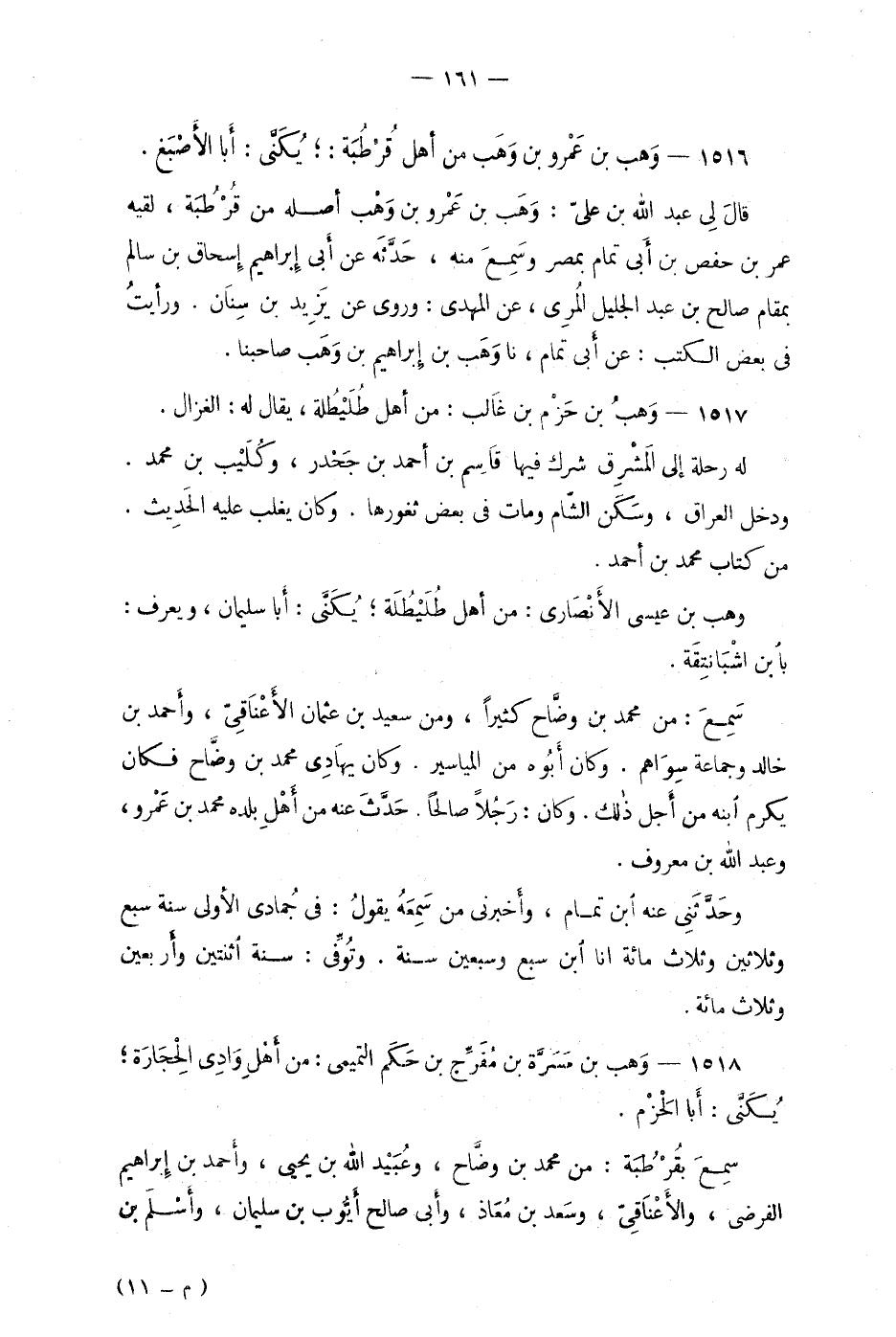 1516 - وَهب بن عَمْرو بن وَهَب من أهل قُرْطُبَة؛ يُكَنَّى: أبَا الأَصْبَغ.