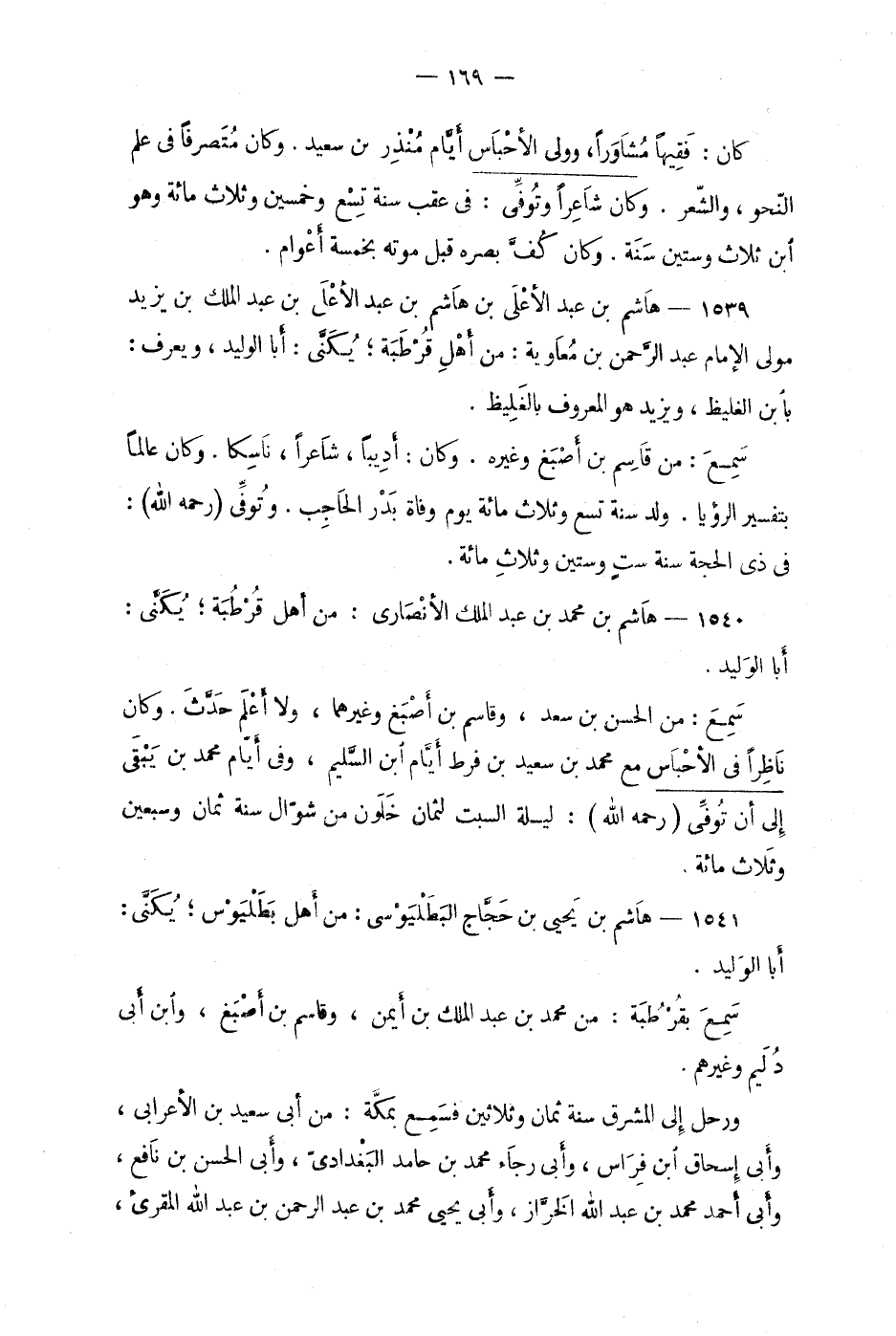 1541 - هَاشم بن يَحيى بن حَجَّاج البَطْليَوْسي: من أهْلِ بَطليَوْس؛ يُكَنَّى: أبَا الوَليد.