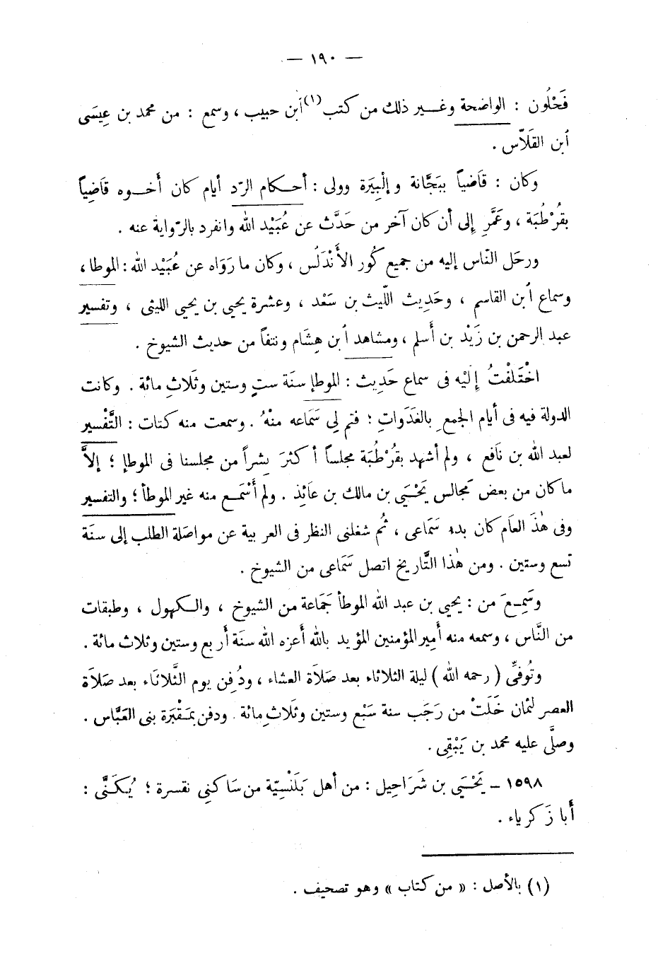 ورَحَل النّاس إليه من جميع كُور الأنْدَلُس، وكان ما رواه عن عُبَيْد الله: الموطأ، وسماع ابن القاسِم، وحَدِيث اللّيث بن سَعْد، وعشرة يحيى بن يحيى الليثي، وتفسير عبد الرحمن بن زَيْد بن أسلم، ومشاهد بن هِشَام ونتفاً من حديث الشيوخ.