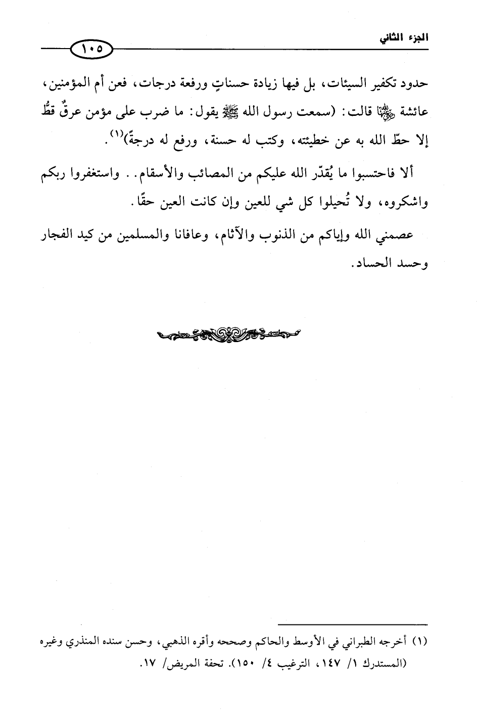 (¬1) أخرجه الطبراني في الأوسط والحاكم وصححه وأقره الذهبي، وحسن سنده المنذري وغيره (المستدرك 1/ 147، الترغيب 4/ 150). تحفة المريض/ 17.