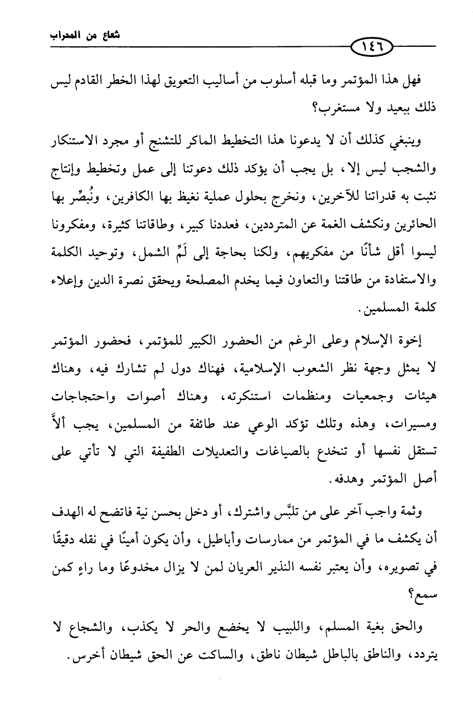 وثمة واجب آخر على من تلبَّس واشترك، أو دخل بحسن نية فاتضح له الهدف أن يكشف ما في المؤتمر من ممارسات وأباطيل، وأن يكون أمينًا في نقله دقيقًا في تصويره، وأن يعتبر نفسه النذير العريان لمن لا يزال مخدوعًا وما راءٍ كمن سمع؟