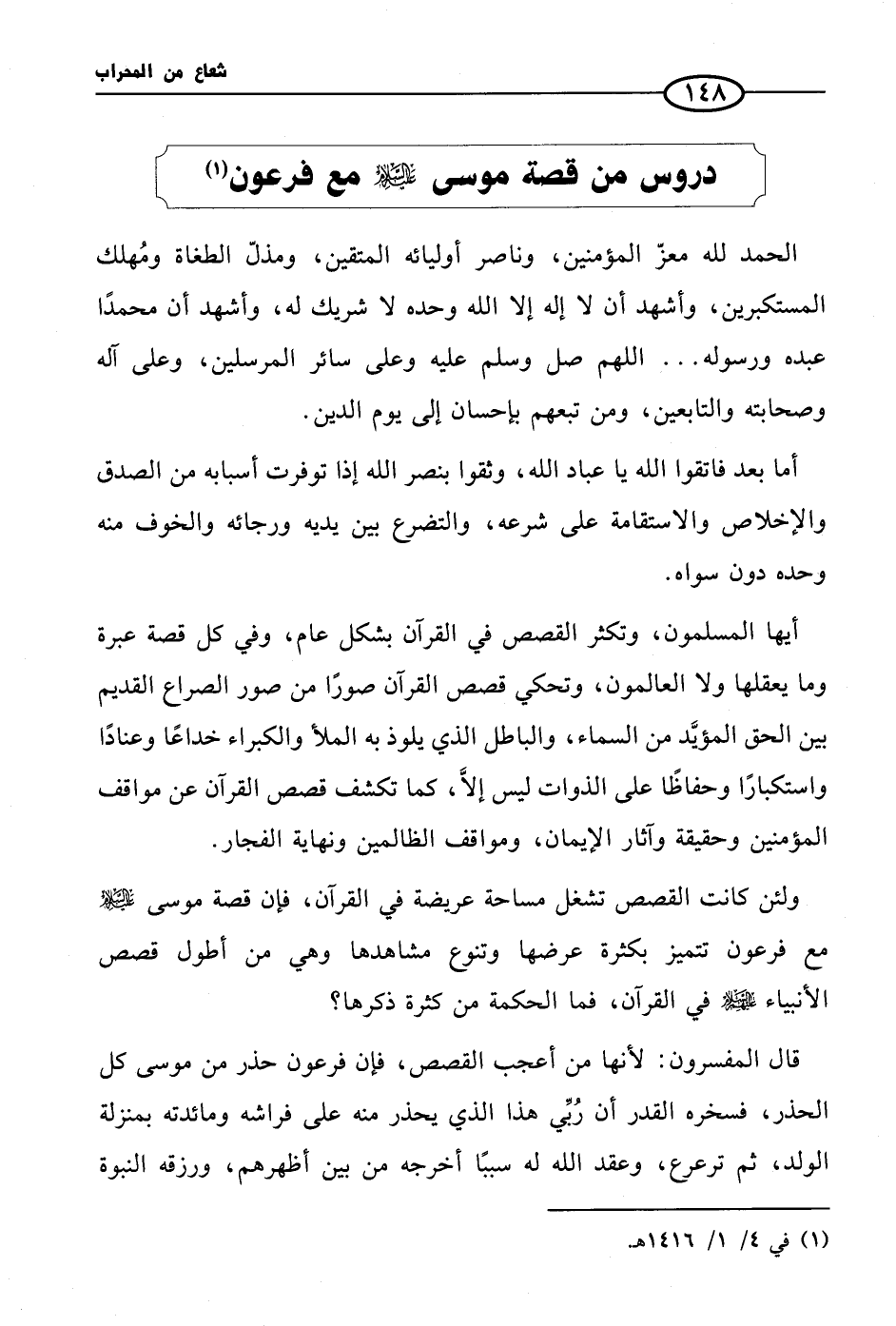 دروس من قصة موسى عليه السلام مع فرعون (¬1)