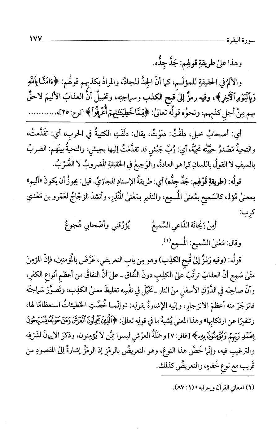 قوله: (طريقة قولهم: جَدَّ جِدُّه) أي: طريقة الإسناد المجازي. قيل: يجوز أن يكون ((أليم)) بمعنى مؤلم، كالسميع بمعنى المسمع، والنذير بمعنى المنذر، وأنشد الزجاج لعمرو بن معدي كرب: