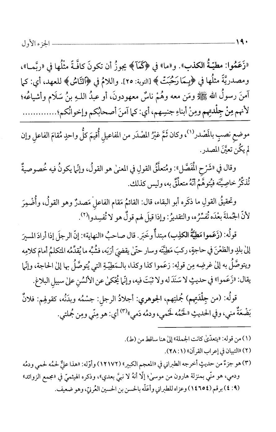 قوله: (زعموا مطية الكذب) مبتدأٌ وخبر. قال صاحب ((النهاية)): إن الرجل إذا أراد السير إلى بلدٍ والظعن في حاجةٍ، ركب مطيته وسار حتى يقضي أربه، فشبه ما يقدمه المتكلم أمام كلامه ويتوصل به إلى غرضه من قوله: زعموا كذا وكذا، بالمطية التي يتوصل بها إلى الحاجة، وإنما يقال: ((زعموا)) في حديثٍ لا سند له ولا ثبت فيه، وإنما يحكى عن الألسن على سبيل البلاغ.