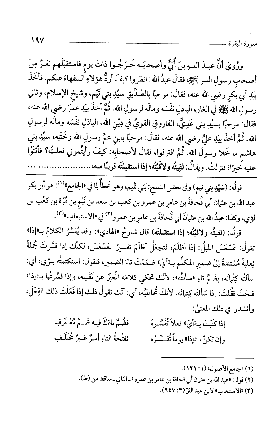 قوله: (لقيته ولاقيته؛ إذا استقبلته) قال شارح ((الهادي)): وقد يفسر الكلام ب ((إذا)) تقول: عسعس الليل: إذا أظلم تفسيراً لعسعس، لكنك إذا فسرت جملةً فعليةً مستندةً إلى ضمير المتكلم ب ((أي)) ضممت تاء الضمير، فتقول: استكتمته سري، أي: سألته كتمانه، بضم تاء ((سألته))، لأنك تحكي كلامه المعبر عن نفسه، وإذا فسرتها بـ ((إذا)) فتحت فقلت: إذا سألته كتمانه، لأنك تخاطبه، أي: أنك تقول ذلك إذا فعلت ذلك الفعل، وأنشدوا في ذلك المعنى: