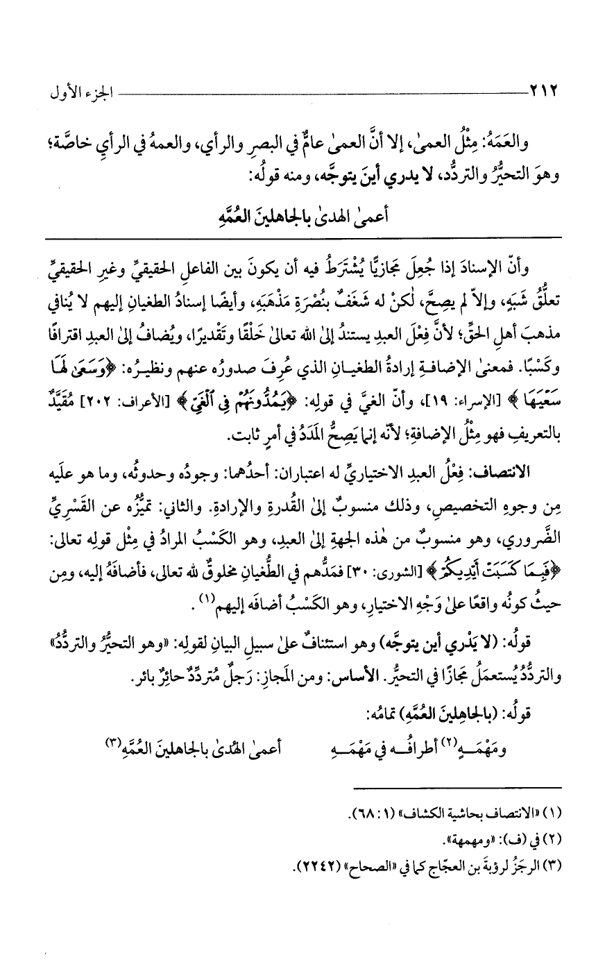وأن الإسناد إذا جعل مجازيًّا يشترط فيه أن يكون بين الفاعل الحقيقي وغير الحقيقي تعلق شبهٍ، وإلا لم يصح، لكن له شغفٌ بنضرة مذهبه، وأيضاً إسناد الطغيان إليهم لا ينافي مذهب أهل الحق؛ لأن فعل العبد يستند إلى الله تعالى خلقاً وتقديراً، ويضاف إلى العبد اقترافاً وكسباً. فمعنى الإضافة إرادة الطغيان الذي عرف صدوره عنهم ونظيره: (وسَعَى لَهَا سَعْيَهَا) [الإسراء: 19]، وأن الغي في قوله: (يَمُدُّونَهُمْ فِي الغَيِّ) [الأعراف: 202] مقيد بالتعريف فهو مثل الإضافة؛ لأنه إنما يصح المدد في أمرٍ ثابت.