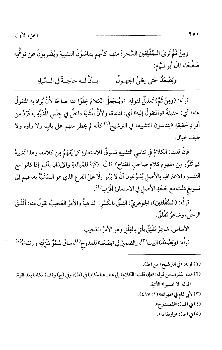 ومن ثم ترى المفلقين السحرة منهم كأنهم يتناسون التشبيه ويضربون عن توهمه صفحاً.