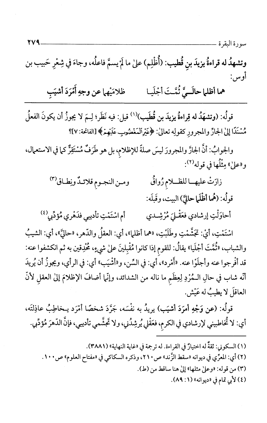 قوله: (وتشهد له قراءة يزيد بن قطيب) قيل: فيه نظر؛ لم لا يجوز أن يكون الفعل مسندًا إلى الجار والمجرور كقوله تعالى: (غَيْرِ الْمَغْضُوبِ عَلَيْهِمْ) [الفاتحة: 7]؟