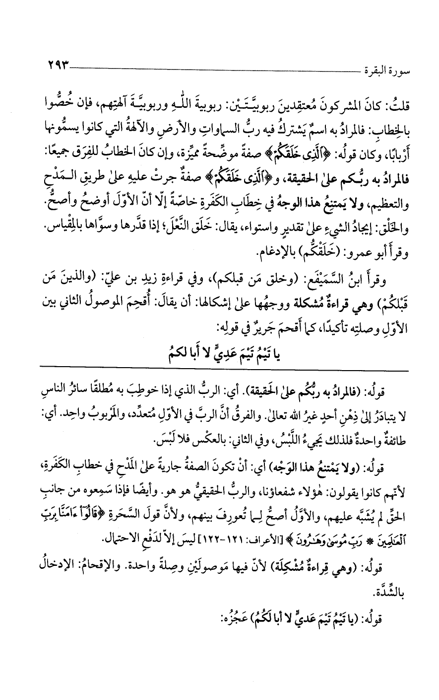 قوله: (فالمراد به ربكم على الحقيقة). أي: الرب الذي إذا خوطب به مطلقًا سائر الناس لا يتبادر إلى ذهن أحدٍ غير الله تعالى. والفرق أن الرب في الأول متعدد، والمربوب واحد. أي: طائفة واحدة فلذلك يجيء اللبس، وفي الثاني: بالعكس فلا لبس.