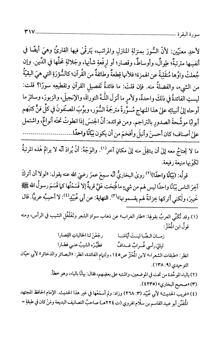 لأحد معنيين، لأن السور بمنزلة المنازل والمراتب يترقى فيها القارئ: وهي أيضاً في أنفسها مترتبة: طوال وأوساط وقصار، أو لرفعة شأنها وجلالة محلها في الدين. وإن جعلت واوها منقلبة عن همزة، فلأنها قطعة وطائفة من القرآن، كالسؤرة التي هي البقية من الشيء والفضلة منه. فان قلت: ما فائدة تفصيل القرآن وتقطيعه سوراً؟ قلت: ليست الفائدة في ذلك واحدة. ولأمر ما أنزل اللَّه التوراة والإنجيل والزبور وسائر ما أوحاه إلى أنبيائه على هذا المنهاج مسوّرة مترجمة السور. وبوّب المصنفون في كل فنّ كتبهم أبوابا موشحة الصدور بالتراجم. ومن فوائده: أنّ الجنس إذا انطوت تحته أنواع، واشتمل على أصناف، كان أحسن وأنبل وأفخم من أن يكون ببّاناً واحداً