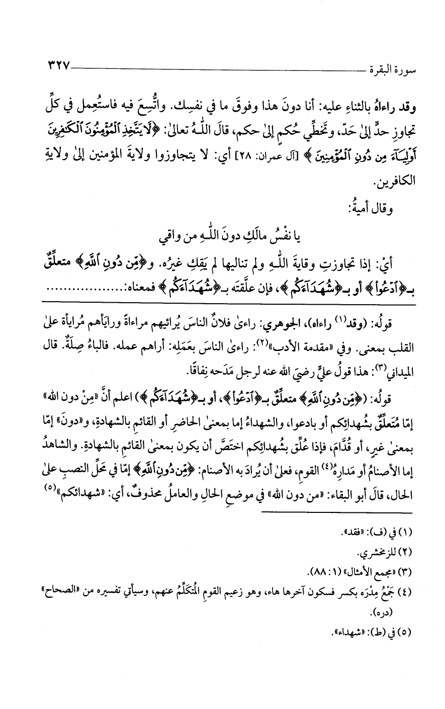 أي: إذا تجاوزت وقاية اللَّه ولم تناليها لم يقك غيره. و (مِنْ دُونِ اللَّهِ) متعلقٌ بـ (ادعوا) أو بـ (شهدائكم)، فإن علقته بـ (شهدائكم) فمعناه: