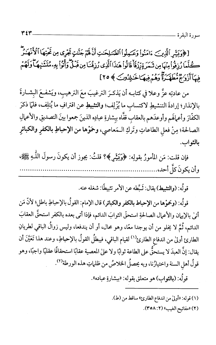 قوله: (بالثواب) هو متعلق بقوله: "ببشارة عباده".