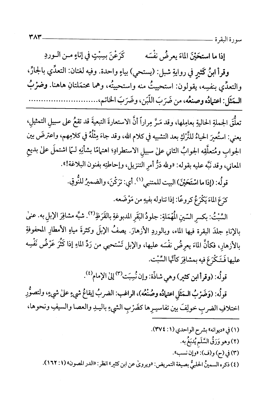 وقرأ ابن كثير في رواية شبل (يستحى) بياء واحدة. وفيه لغتان: التعدي بالجارّ والتعدي بنفسه. يقولون: استحييت منه واستحييته، وهما محتملتان هاهنا. وضرب المثل: اعتماده وصنعه، من ضرب اللبن وضرب الخاتم، ......