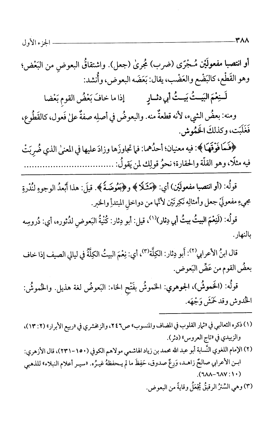 قوله: (لنعم البيت بيت أبي دثار)، قيل: أبو دثار: كنية البعوض لدثوره، أي: دروسه بالنهار.