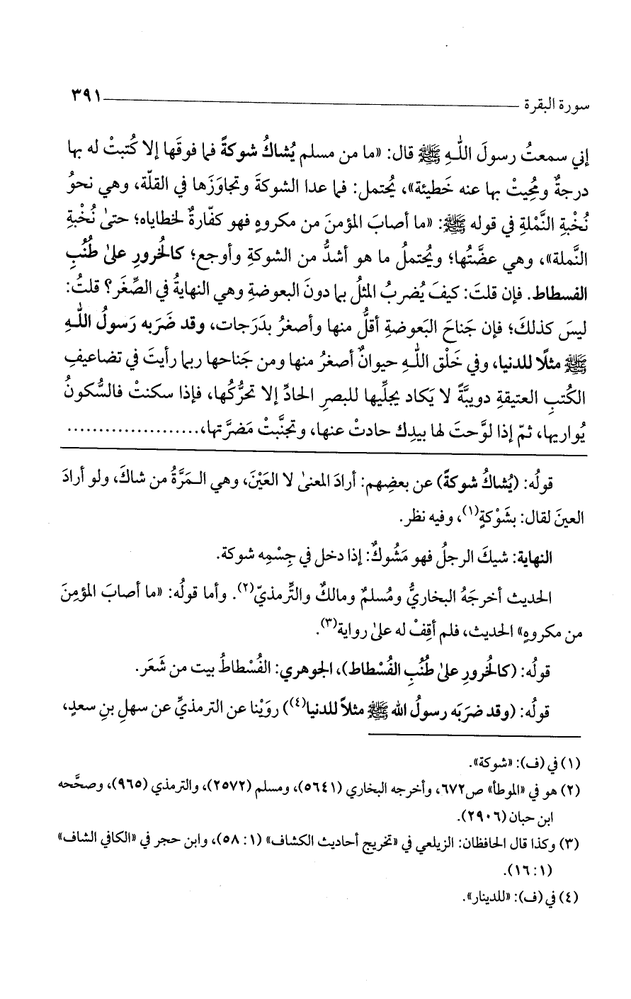 قوله: (يُشاك شوكةً) عن بعضهم: أراد المعنى لا العين، وهي المرة من شاك، ولو أراد العين لقال: بشوكةٍ، وفيه نظر.