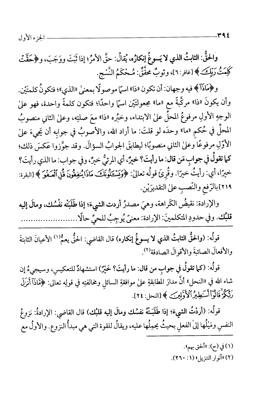 قوله: (والحق الثابت الذي لا يسوغ إنكاره) قال القاضي: الحق يعم الأعيان الثابتة والأفعال الصائبة والأقوال الصادقة.