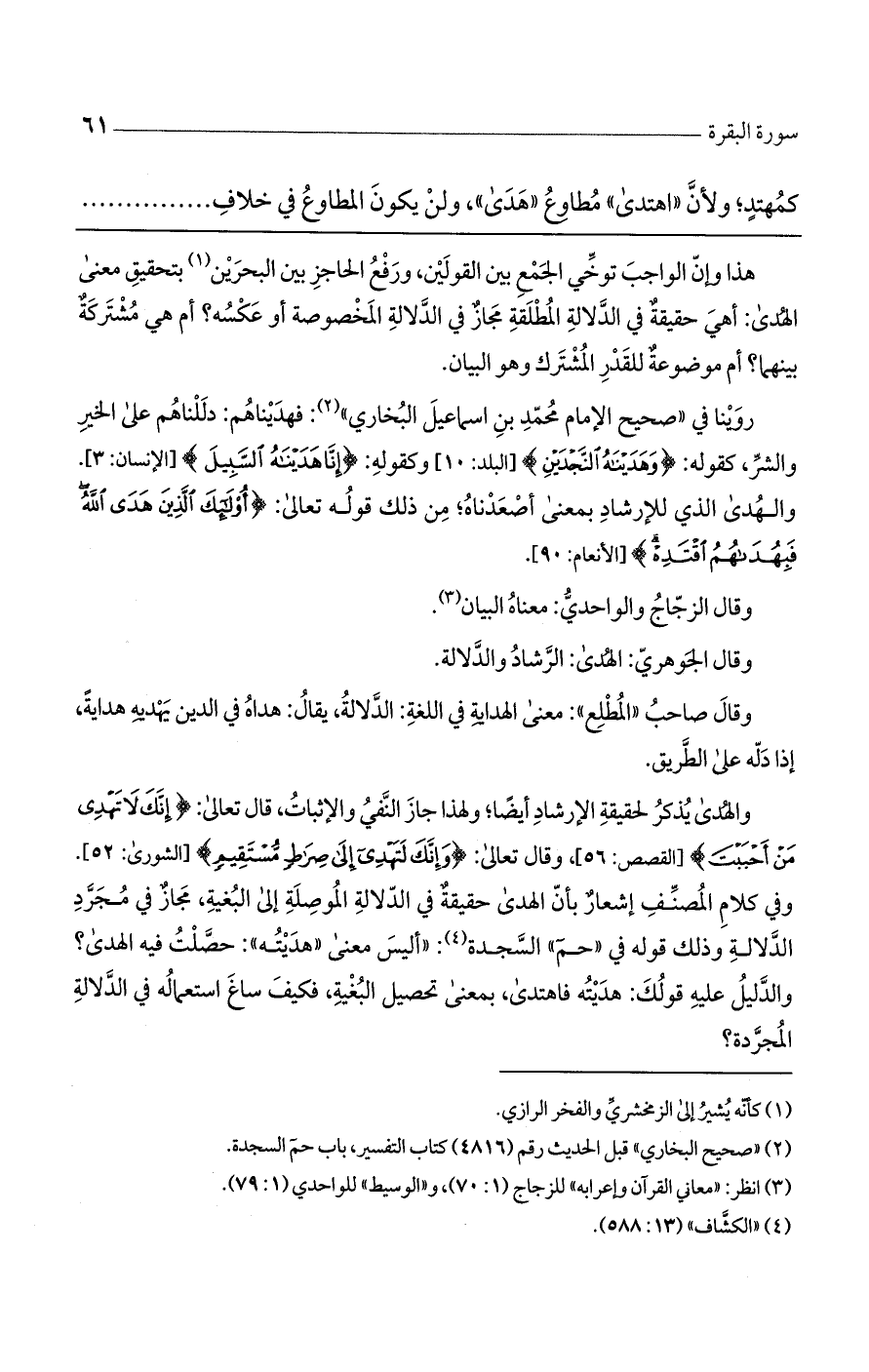هذا وإن الواجب توخي الجمع بين القولين، ورفع الحاجز بين البحرين بتحقيق معنى الهدى: أهي حقيقة في الدلالة المطلقة مجاز في الدلالة المخصوصة أو عكسه؟ أم هي مشتركة بينهما؟ أم موضوعة للقدر المشترك وهو البيان.