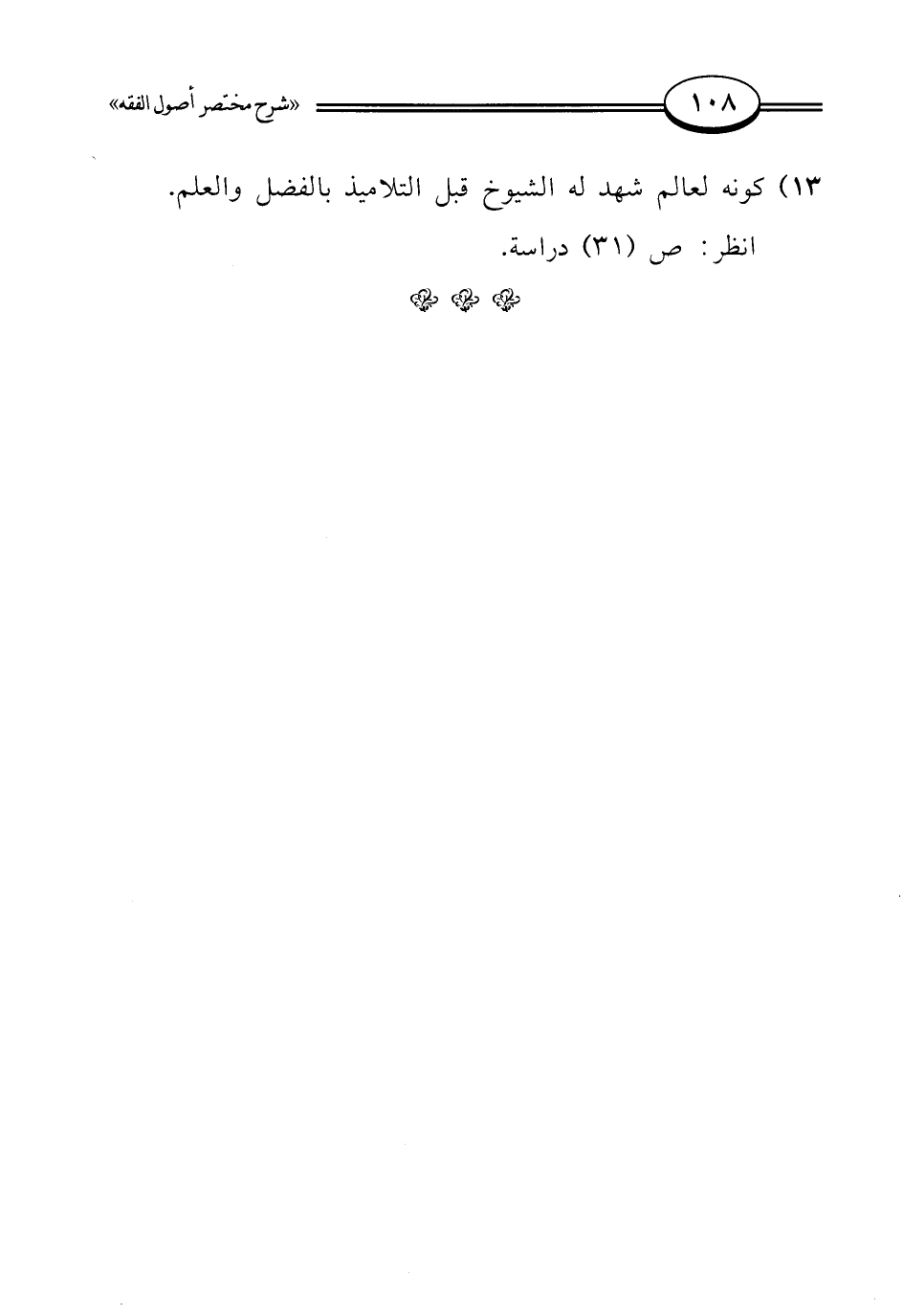 13) كونه لعالم شهد له الشيوخ قبل التلاميذ بالفضل والعلم.
