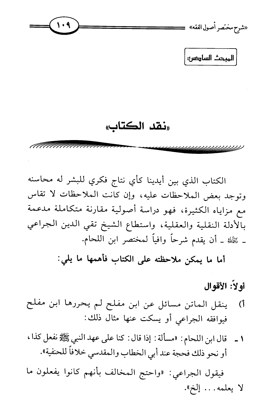 المبحث السادس: "نقد الكتاب"