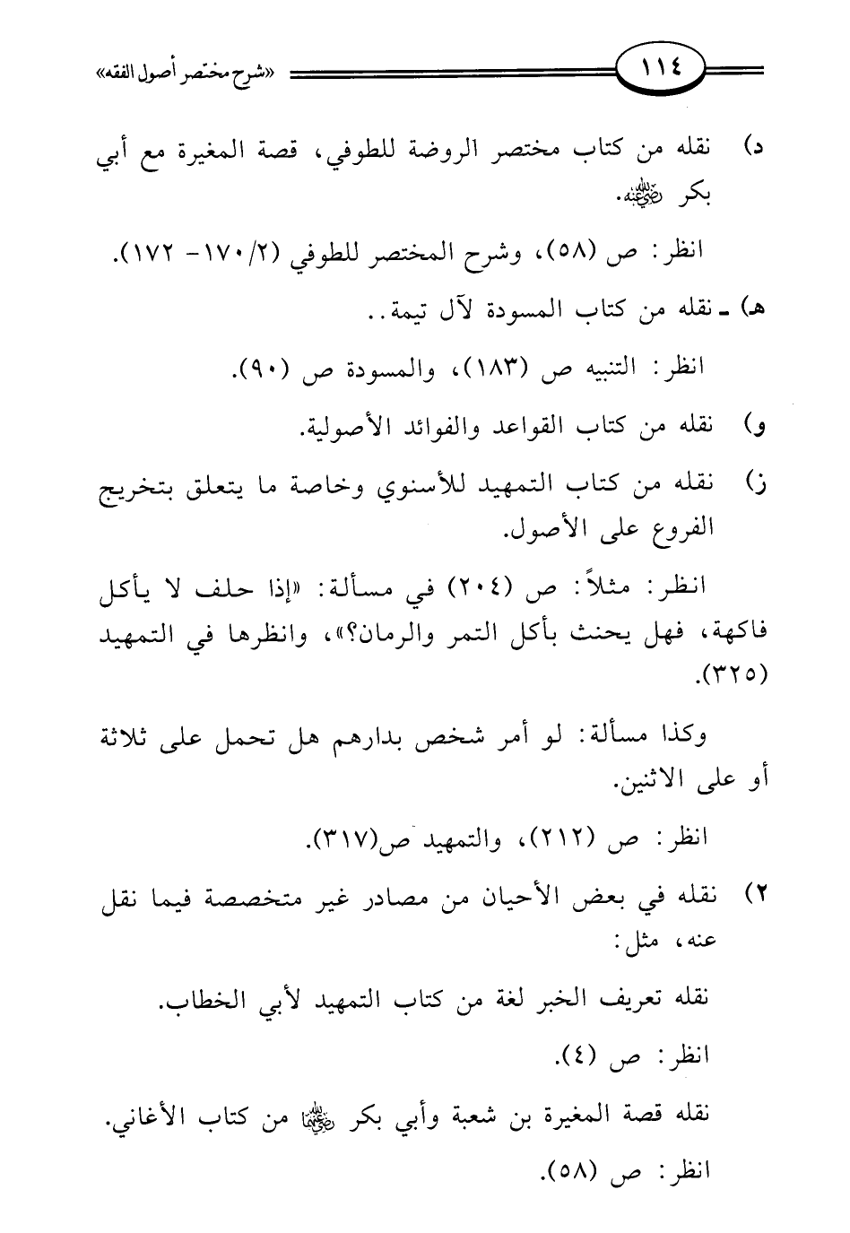 ز) نقله من كتاب التمهيد للأسنوي وخاصة ما يتعلق بتخريج الفروع على الأصول.