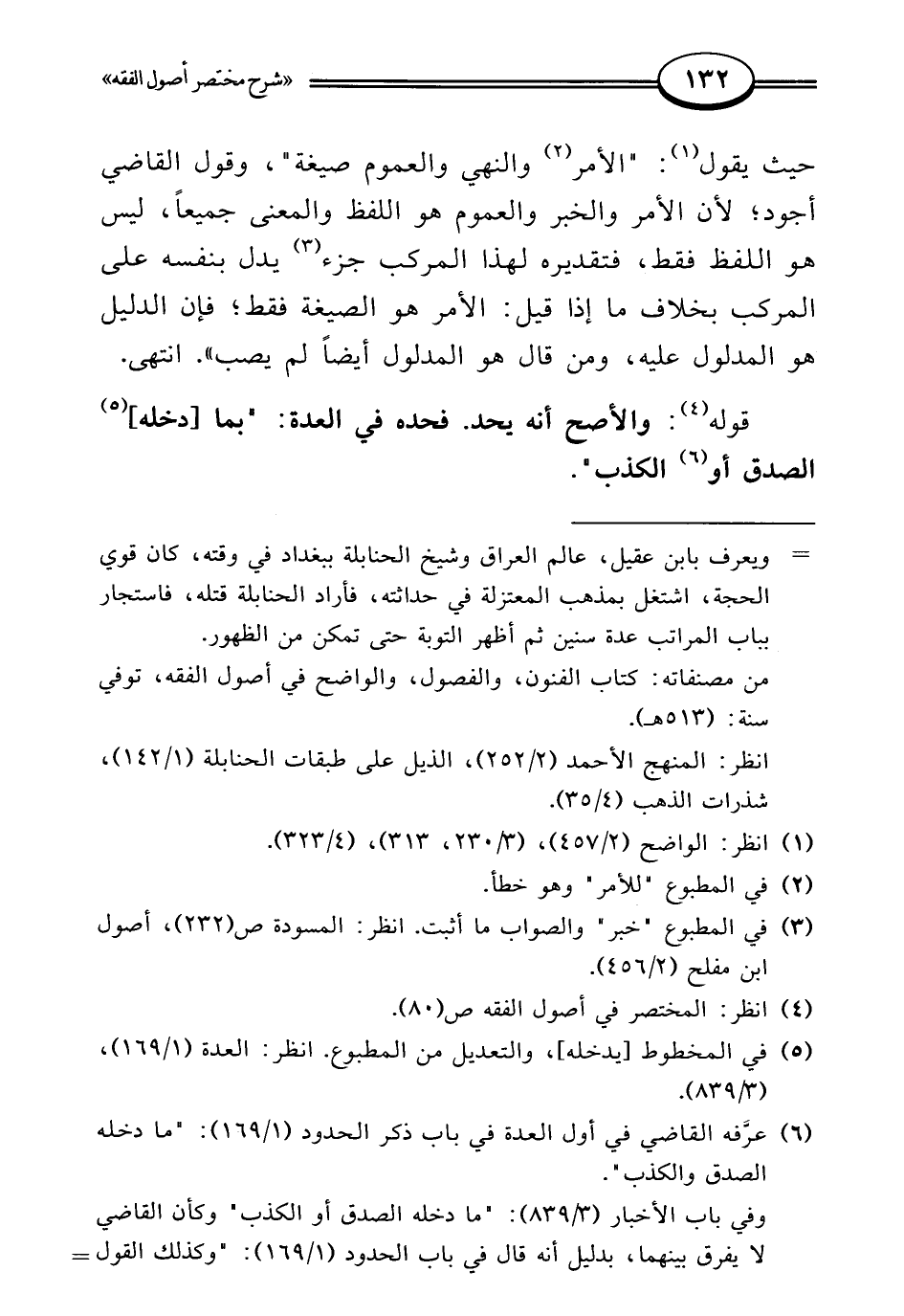 (¬4) انظر: المختصر في أصول الفقه ص (80).