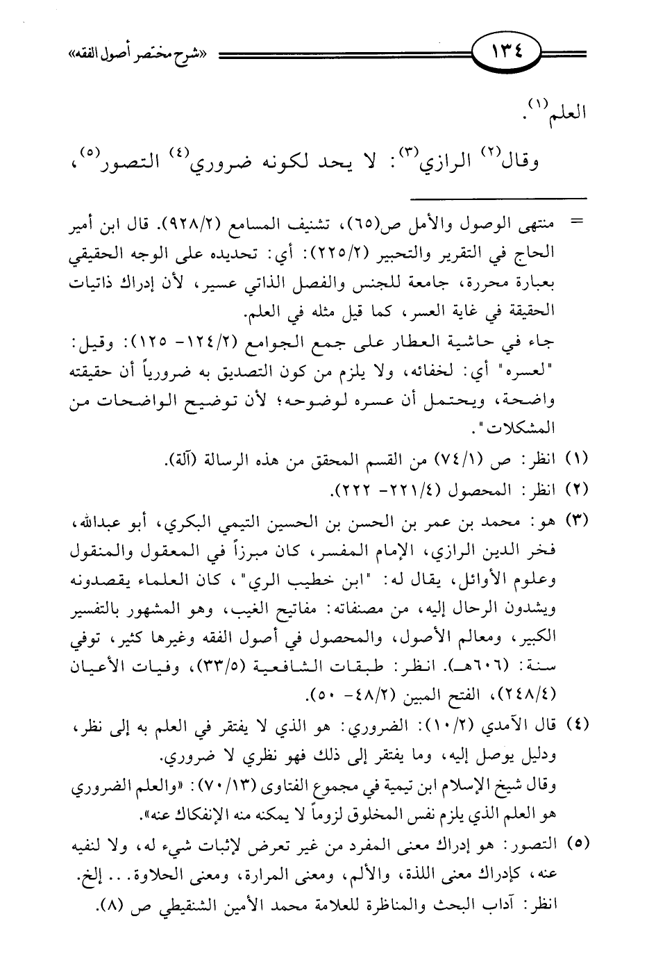 وقال (¬2) الرازي (¬3): لا يحد لكونه ضروري (¬4) التصور (¬5)،