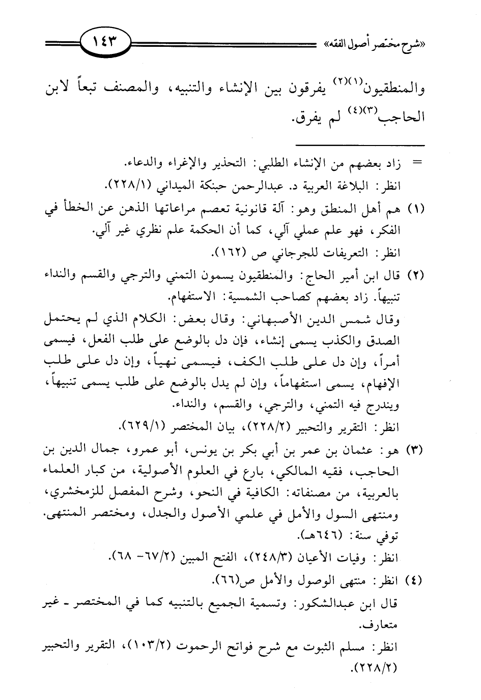 (¬3) هو: عثمان بن عمر بن أبي بكر بن يونس، أبو عمرو، جمال الدين بن الحاجب، فقيه المالكي، بارع في العلوم الأصولية، من كبار العلماء بالعربية، من مصنفاته: الكافية في النحو، وشرح المفصل للزمخشري، ومنتهى السول والأمل في علمي الأصول والجدل، ومختصر المنتهى.