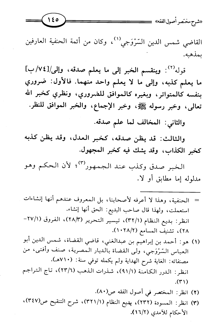 (¬1) هو: أحمد بن إبراهيم بن عبد الغني، قاضي القضاة، شمس الدين أبو العباس السّرْوَجي، ولي القضاة بالديار المصرية، صنف وأفتى، من مصنفاته: الغاية شرح الهداية ولم يكمله توفي سنة: (710 هـ).