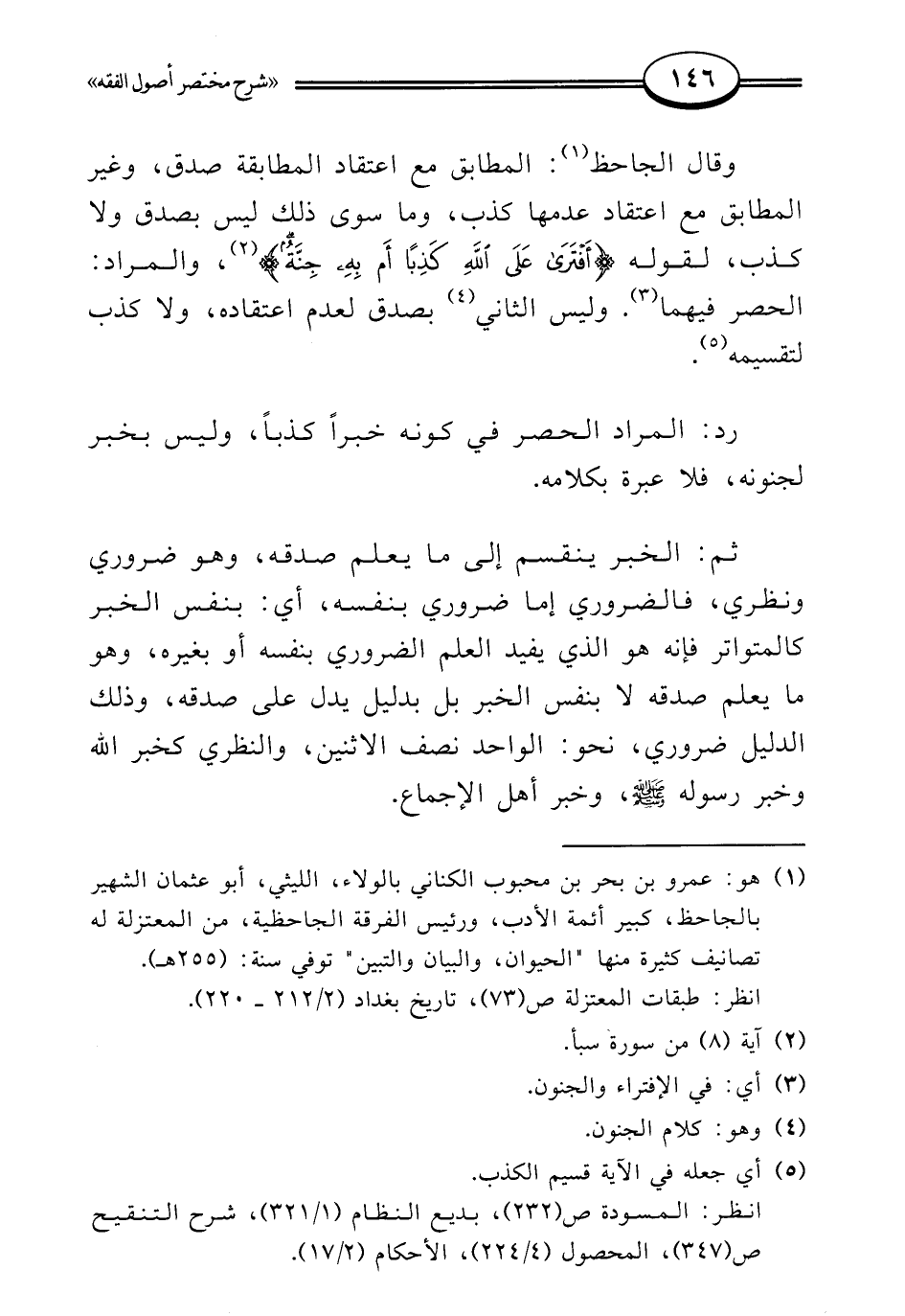 (¬1) هو: عمرو بن بحر بن محبوب الكناني بالولاء، الليثي، أبو عثمان الشهير بالجاحظ، كبير أئمة الأدب، ورئيس الفرقة الجاحظية، من المعتزلة له تصانيف كثيرة منها "الحيوان، والبيان والتبين" توفي سنة: (255 هـ).