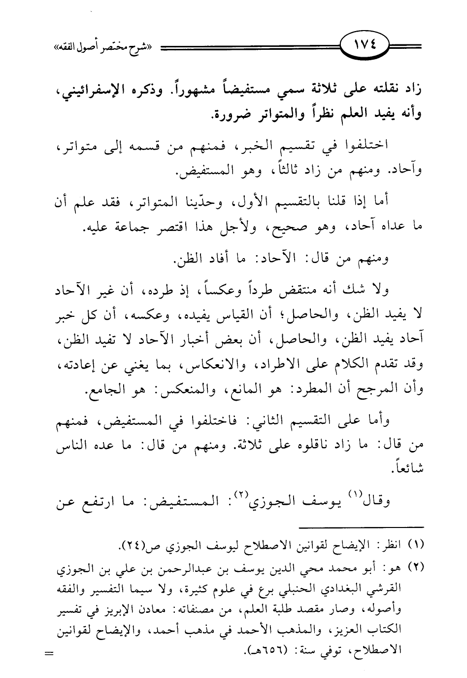 وقال (¬1) يوسف الجوزي (¬2): المستفيض: ما ارتفع عن