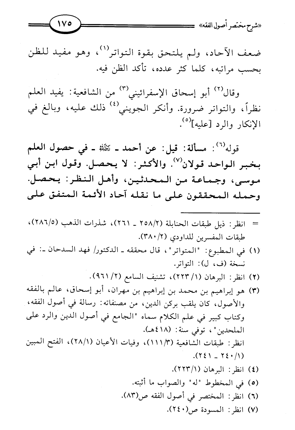 (¬1) في المطبوع: "المتواتر"، قال محققه -الدكتور/ فهد السدحان-: في نسخة (ف، ل): التواتر.