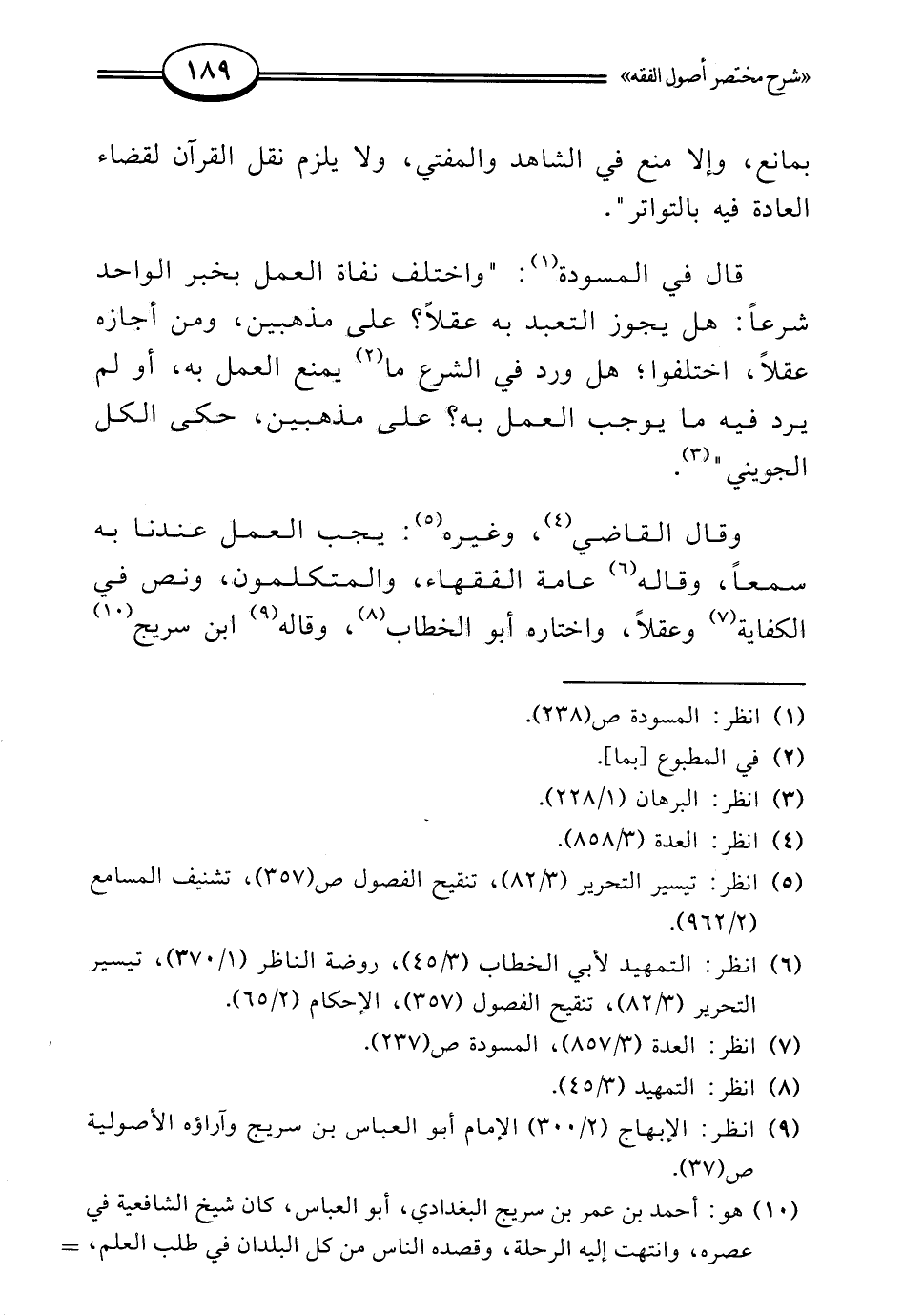 (¬9) انظر: الإبهاج (2/ 300) الإمام أبو العباس بن سريج وآراؤه الأصولية ص (37).