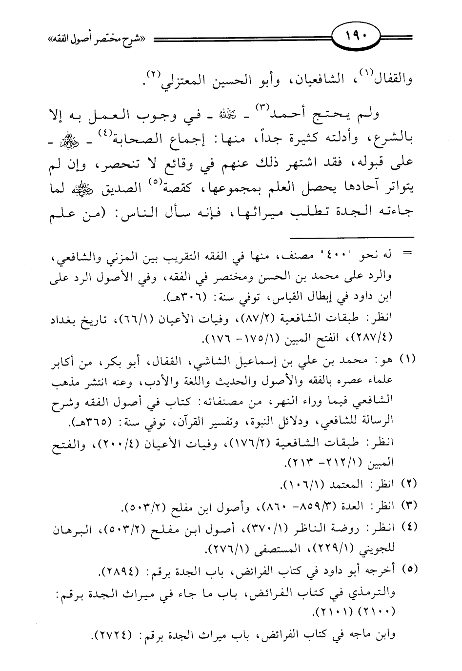 (¬1) هو: محمد بن علي بن إسماعيل الشاشي، القفال، أبو بكر، من أكابر علماء عصره بالفقه والأصول والحديث واللغة والأدب، وعنه انتشر مذهب الشافعي فيما وراء النهر، من مصنفاته: كتاب في أصول الفقه وشرح الرسالة للشافعي، ودلائل النبوة، وتفسير القرآن، توفي سنة: (365 هـ).