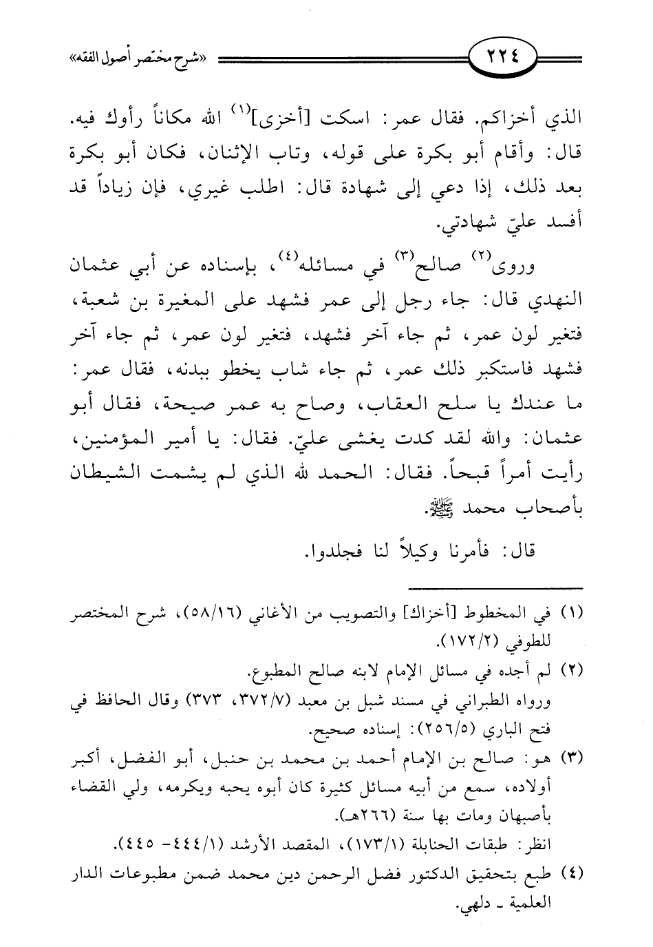 (¬3) هو: صالح بن الإمام أحمد بن محمد بن حنبل، أبو الفضل، أكبر أولاده، سمع من أبيه مسائل كثيرة كان أبوه يحبه ويكرمه، ولي القضاء بأصبهان ومات بها سنة (266 هـ).