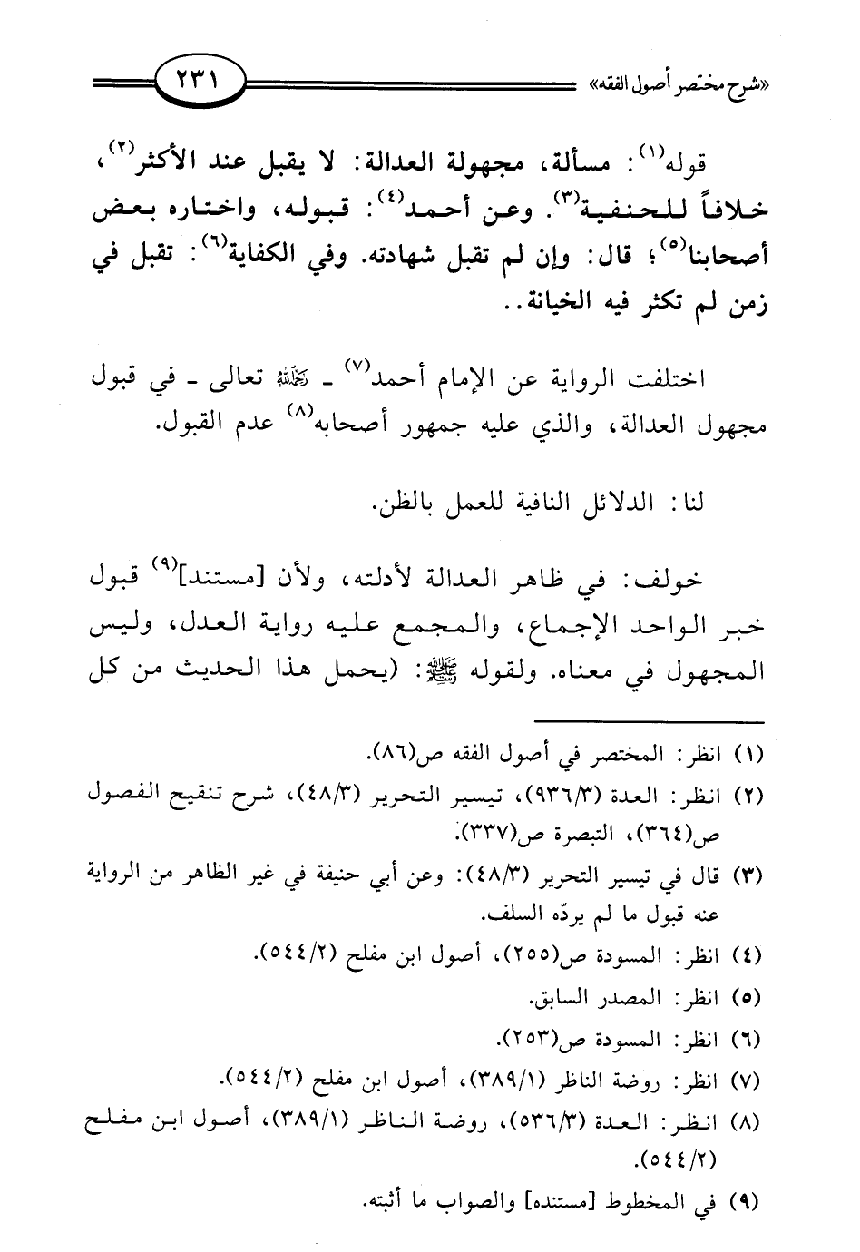 (¬8) انظر: العدة (3/ 536)، روضة الناظر (1/ 389)، أصول ابن مفلح (2/ 544).