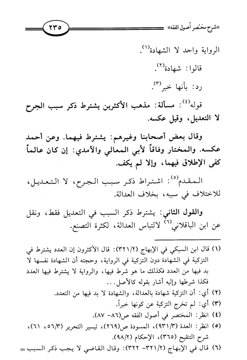 (¬6) قال في الإبهاج (2/ 321 - 322): وقال القاضي لا يجب ذكر السبب =