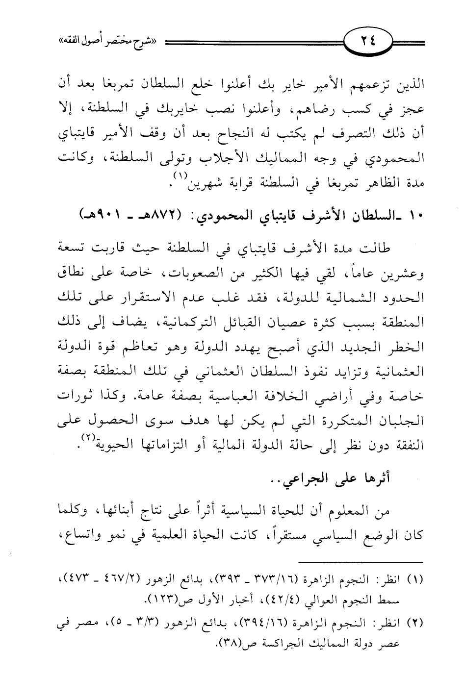 (¬2) انظر: النجوم الزاهرة (16/ 394)، بدائع الزهور (3/ 3 - 5)، مصر في عصر دولة المماليك الجراكسة ص (38).