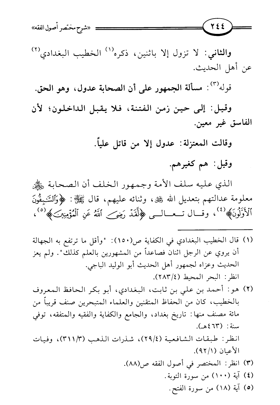(¬3) انظر: المختصر في أصول الفقه ص (88).