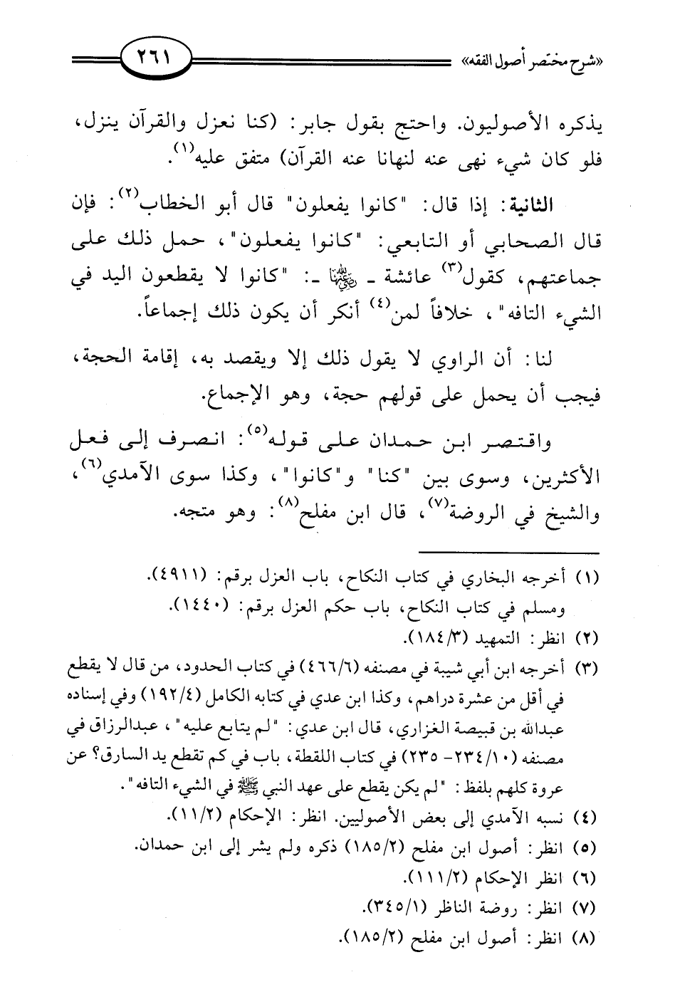 (¬8) انظر: أصول ابن مفلح (2/ 185).