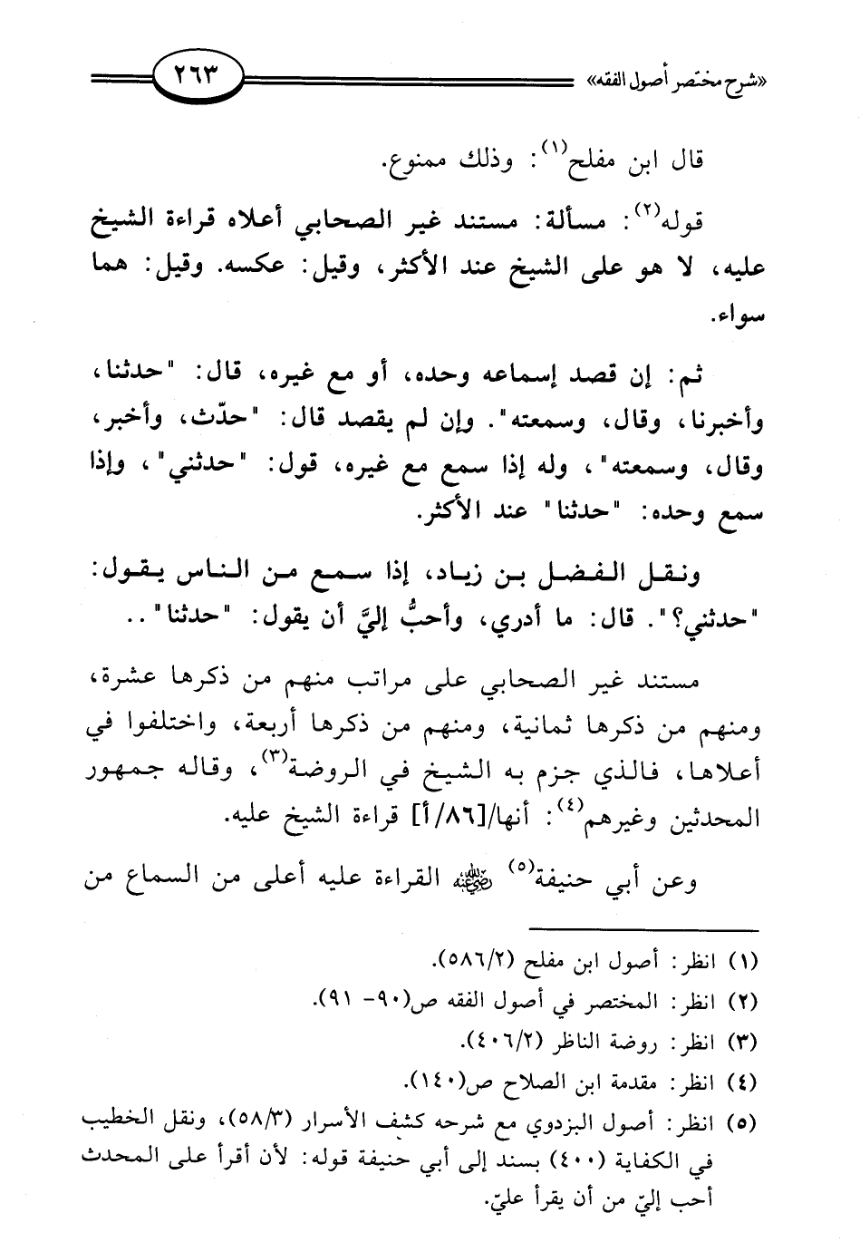 (¬5) انظر: أصول البزدوي مع شرحه كشف الأسرار (583)، ونقل الخطيب في الكفاية (400) بسند إلى أبي حنيفة قوله: لأن أقرأ على المحدث أحب إليَّ من أن يقرأ عليّ.