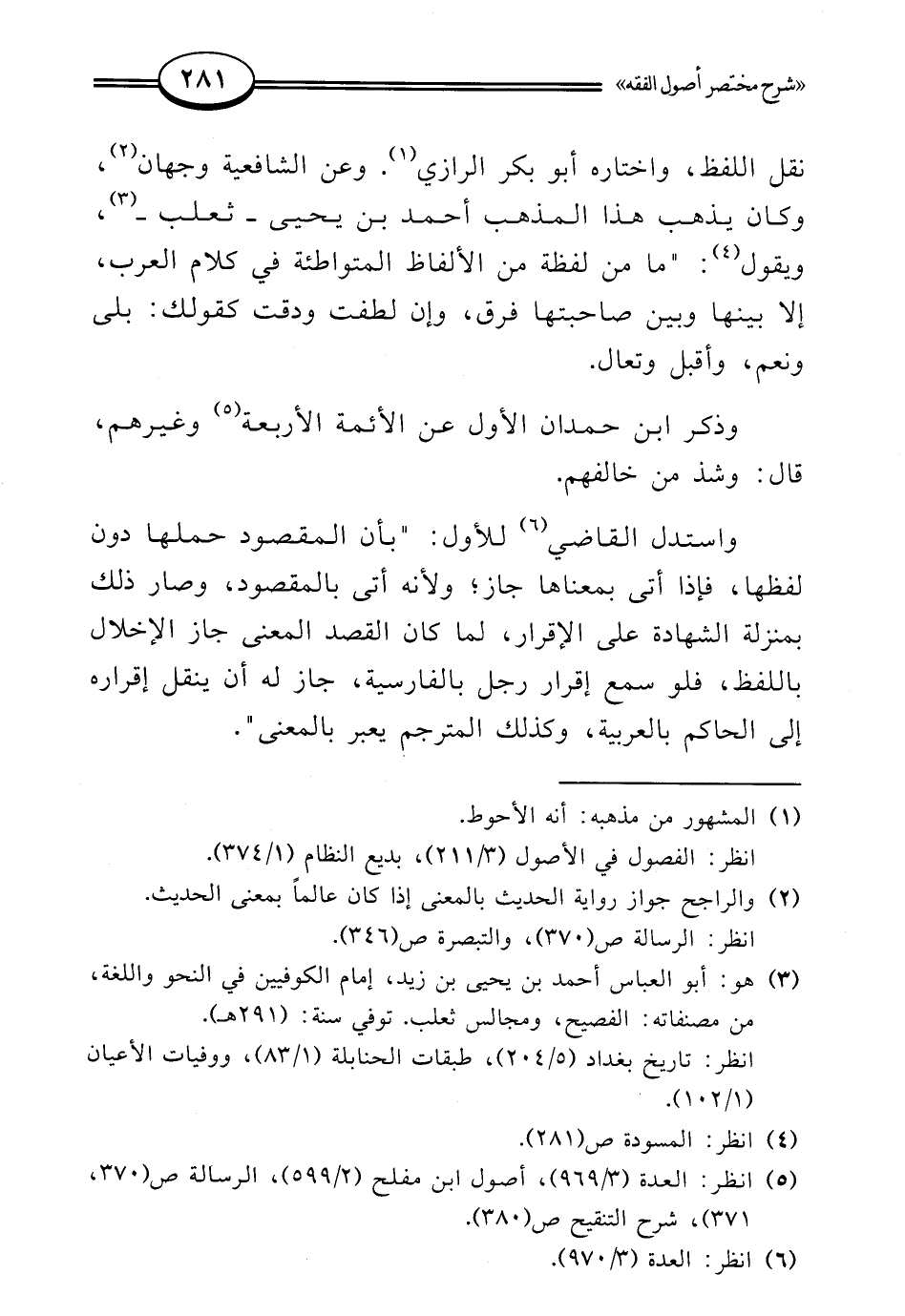 (¬5) انظر: العدة (3/ 969)، أصول ابن مفلح (2/ 599)، الرسالة ص (370، 371)، شرح التنقيح ص (380).