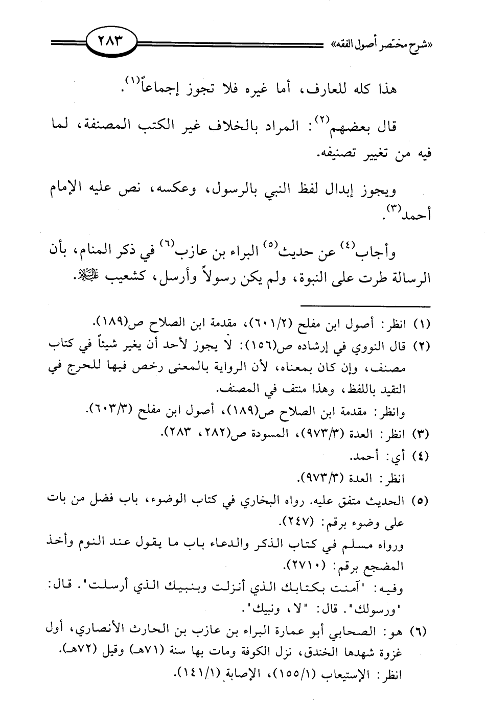 (¬1) انظر: أصول ابن مفلح (2/ 601)، مقدمة ابن الصلاح ص (189).