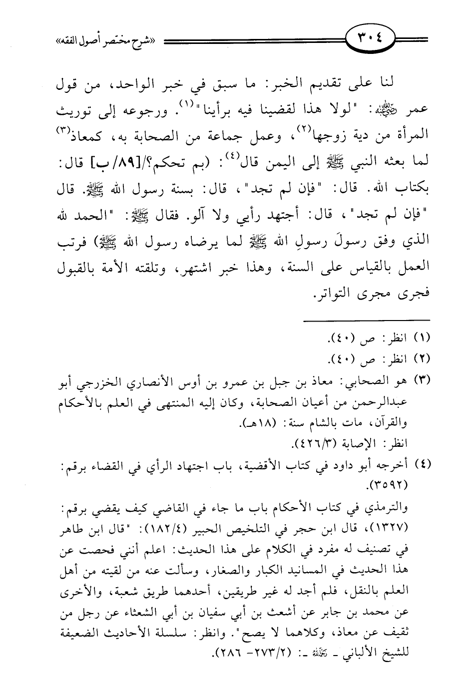 (¬4) أخرجه أبو داود في كتاب الأقضية، باب اجتهاد الرأي في القضاء برقم: (3592).