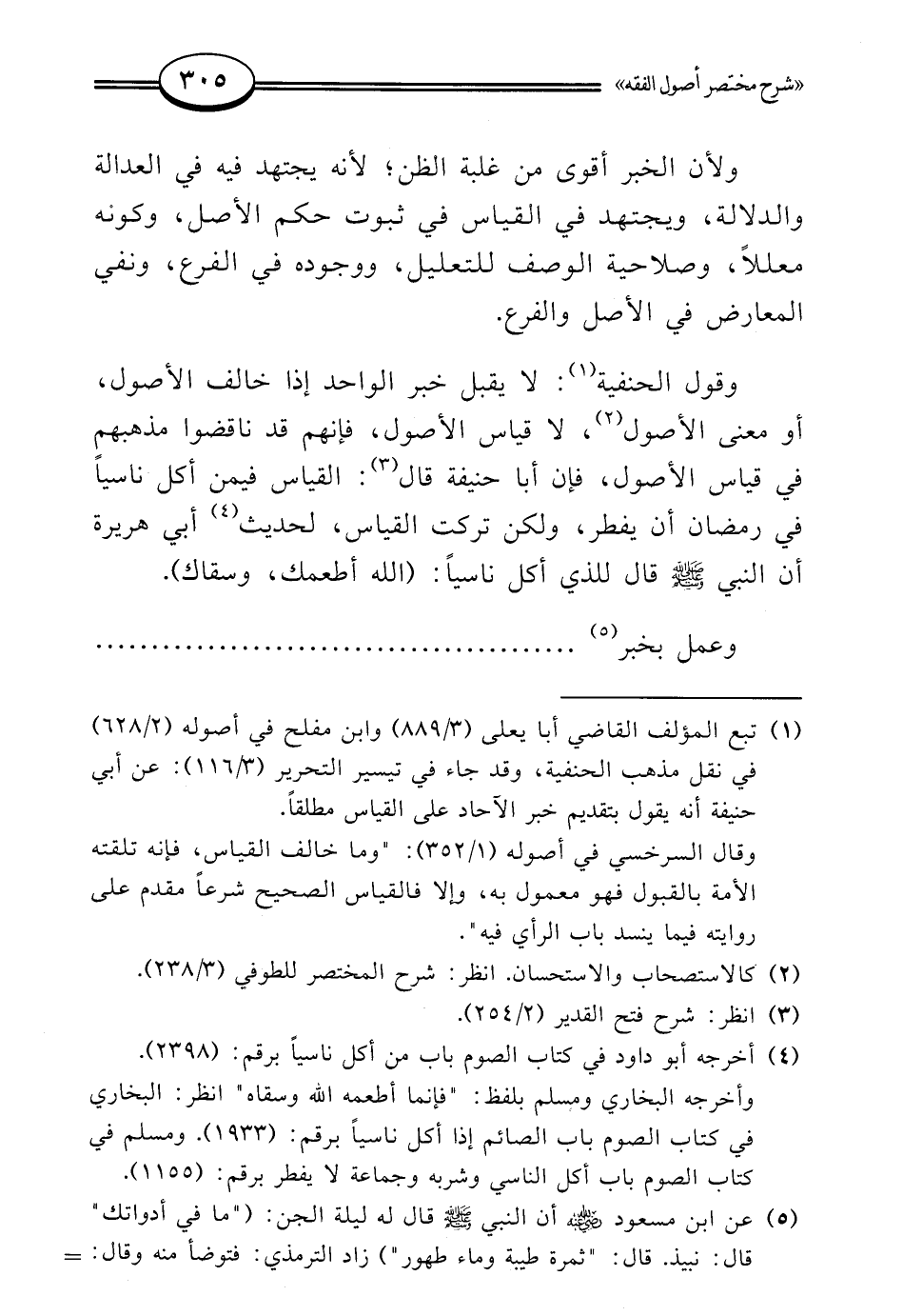 وقول الحنفية (¬1): لا يقبل خبر الواحد إذا خالف الأصول، أو معنى الأصول (¬2)، لا قيالس الأصول، فإنهم قد ناقضوا مذهبهم في قياس الأصول، فإن أبا حنيفة قال (¬3): القياس فيمن أكل ناسيًا في رمضان أن يفطر، ولكن تركت القياس، لحديث (¬4) أبي هريرة أن النبي - صلى الله عليه وسلم - قال للذي أكل ناسيًا: (الله أطعمك، وسقاك).