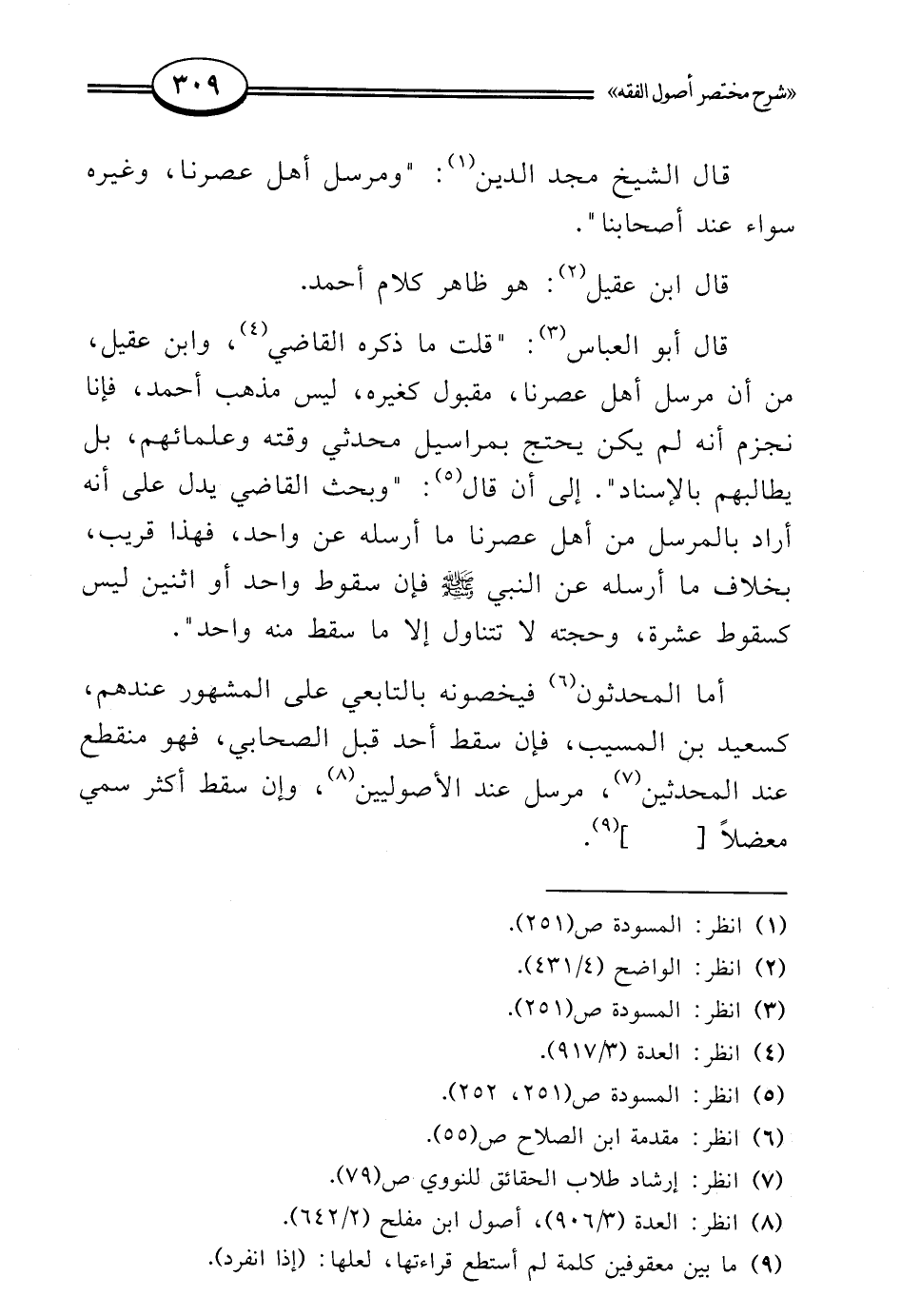 (¬8) انظر: العدة (3/ 906)، أصول ابن مفلح (2/ 642).