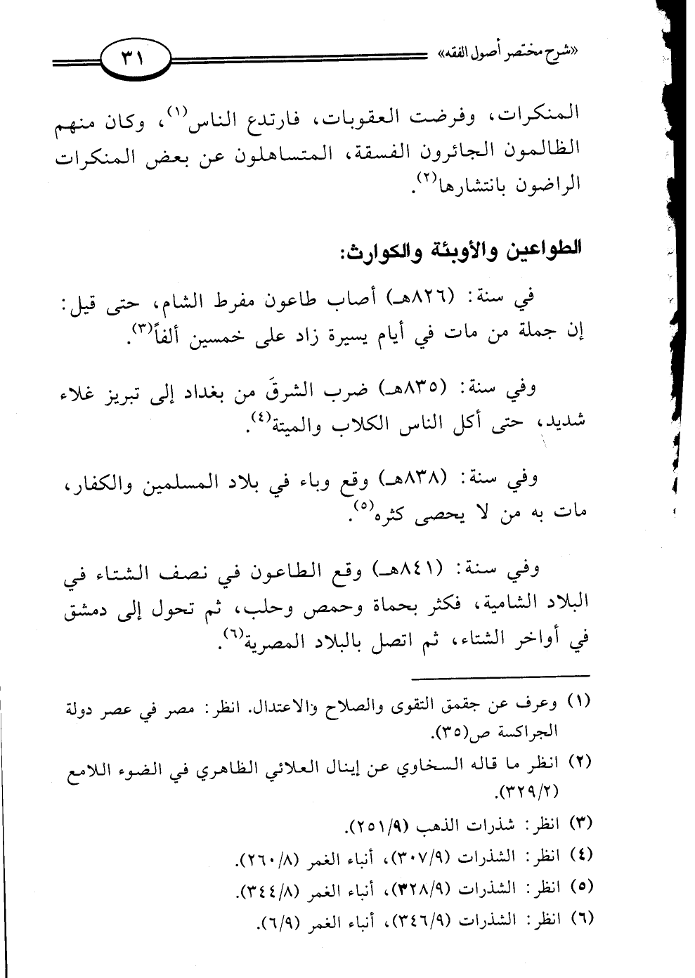 في سنة: (826 هـ) أصاب طاعون مفرط الشام، حتى قيل: إن جملة من مات في أيام يسيرة زاد على خمسين ألفًا (¬3).