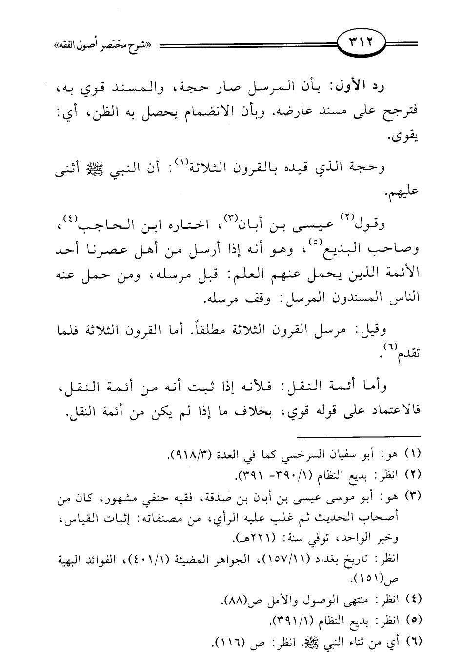 (¬3) هو: أبو موسى عيسى بن أبان بن صدقة، فقيه حنفي مشهور، كان من أصحاب الحديث ثم غلب عليه الرأي، من مصنفاته: إثبات القياس، وخبر الواحد، توفي سنة: (221 هـ).